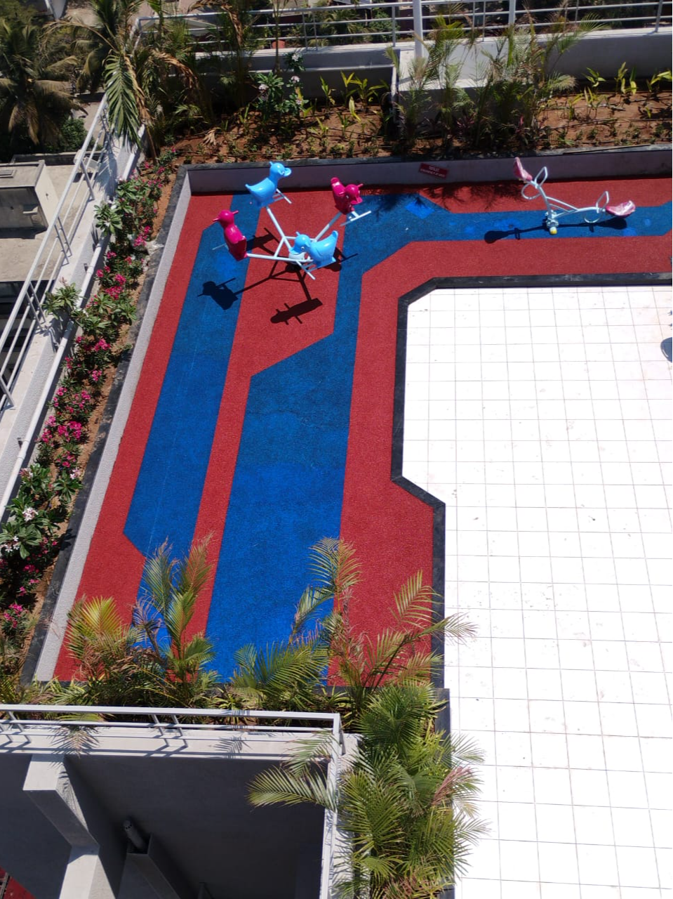 We at Maxx Sportz and Fitness Pvt. Ltd. are happy to share an exciting update from our ongoing project in Pune. Our team is currently working on installing EPDM flooring along with kids play equipment on top terraces and podium areas.